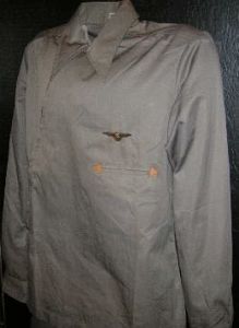 The battle dress jacket had a single-breasted style with a fly front and two patch style pockets having buttoned flaps. Black stripes on the sleeves designated the rank. The Naval Flight Nurse Aviation Insignia was pinned above the left pocket. . .